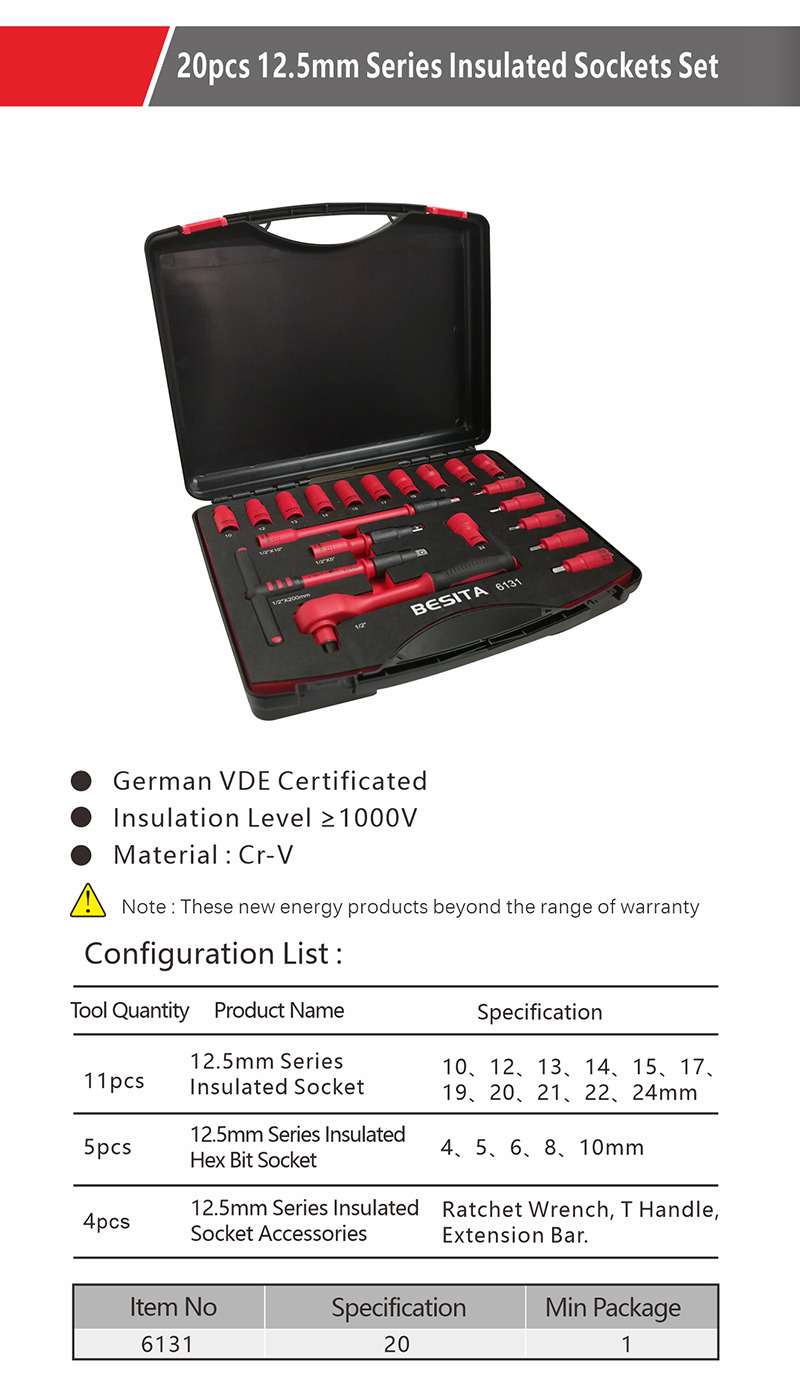 20pcs 12.5mm Series Insulated Socket Set