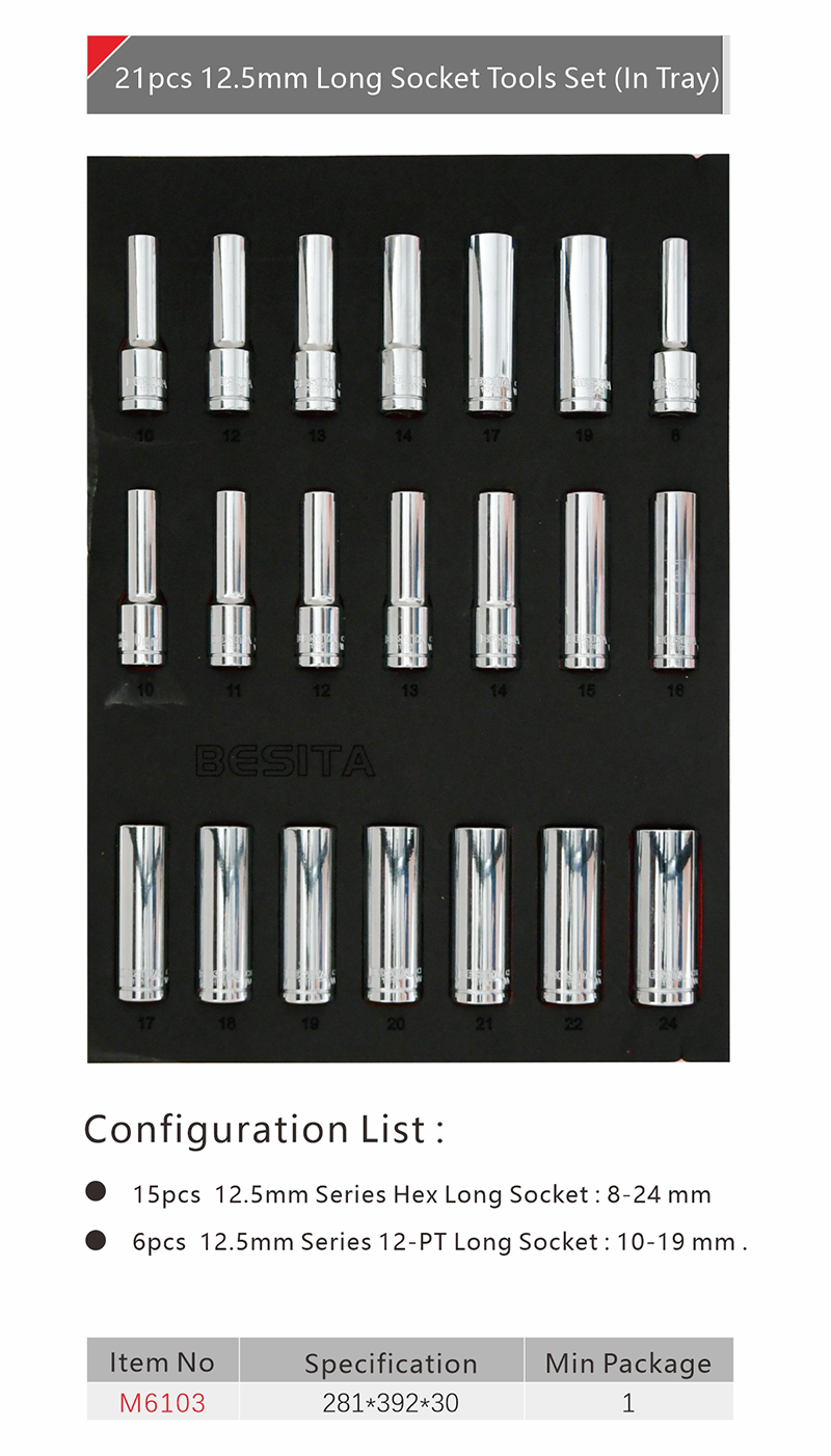 21pcs 12.5mm Long Socket Tool Set (In Tray)