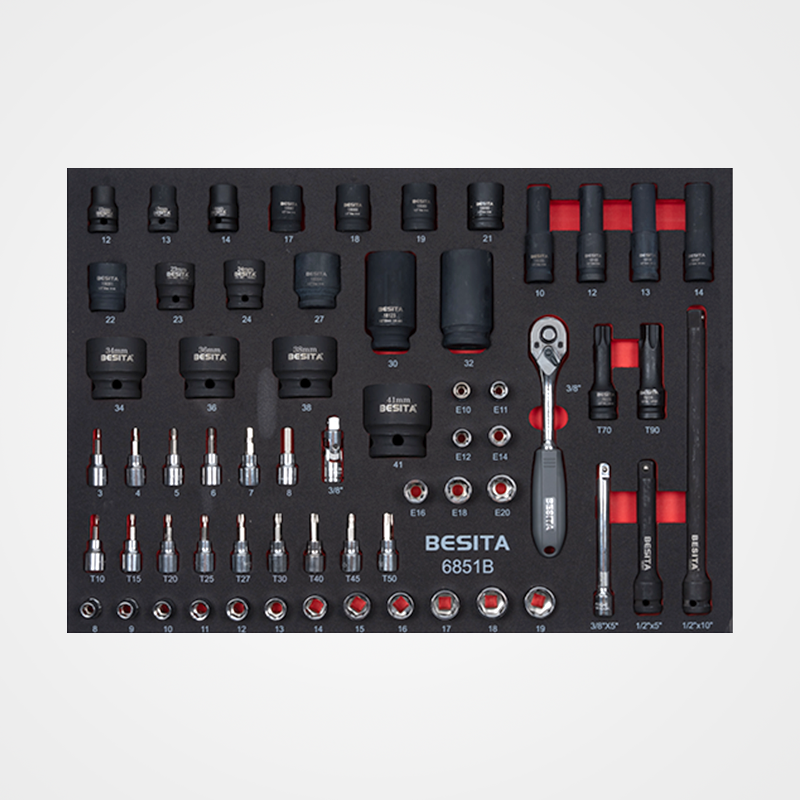 17 pieces of 12.5mm series metric hex sockets: 10, 12, 13, 14, 15, 16, 17, 18, 19.