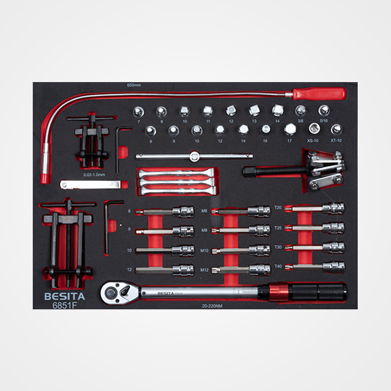 6 pieces three-jaw puller, bearing puller, feeler gauge, torque wrench, flex pickup