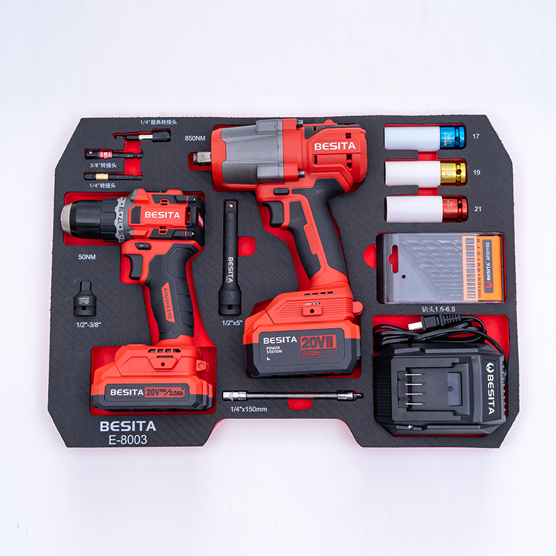 Combination of brushless lithium electric drill and brushless lithium electric impact wrench. The electric drill can solve the problem of drilling holes and tightening small screws. The high torque wrench can solve the problem of loading and unloading high-strength large screws.